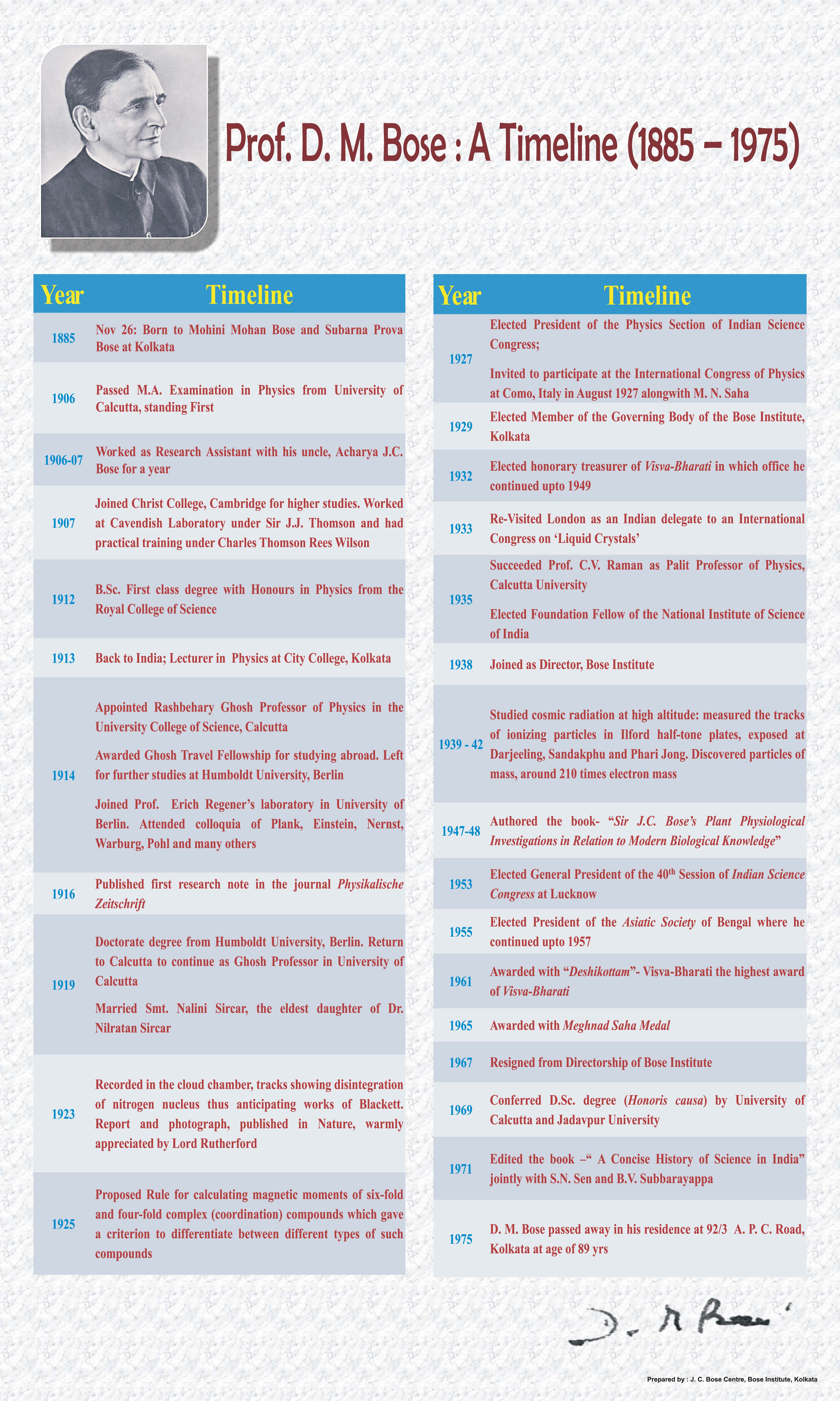 Prof. D.M.Bose : A Timeline (1885-1975)